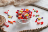 İçindekiler : Şeker, Glikoz şurubu, Asitlik düzenleyici(Sitrik Asit), Sıvı Karamel (E150), Aroma verici (Çilek,Portakal,Karpuz,Limon,Böğürtlen,Vişne, Tutti Frutti), Renklendiriciler (Ponceau4R,Sunset,Yellow,Tarrazine,Pea Green,Brillant Blue)