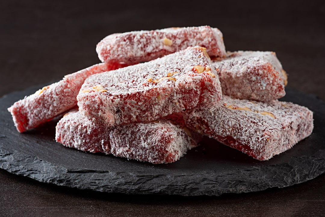 İçindekiler : Şeker, Su, Mısır Nişastası, Glikoz, Fıstık, Fındık, Aroma verici (Nar), Renklendirici , Pudra şekeri Asitlik düzenleyici (Sitrik asit).Menşei : Türkiye