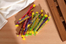 İçindekiler : Şeker, glikoz, sorbitol, hidrojene bitkisel yağ (palm), kıvam arttırıcı (agar), asitlik düzenleyiici (sitrik asit), bitkisel emülgatör (ayçiçek lesitini, gliserol monostearat), aroma vericiler (limon,portakal , elma, çilek, ahududu,vişne), renklendiriciler (tartazin, sunset yellow, karmoizin, brillant blue)